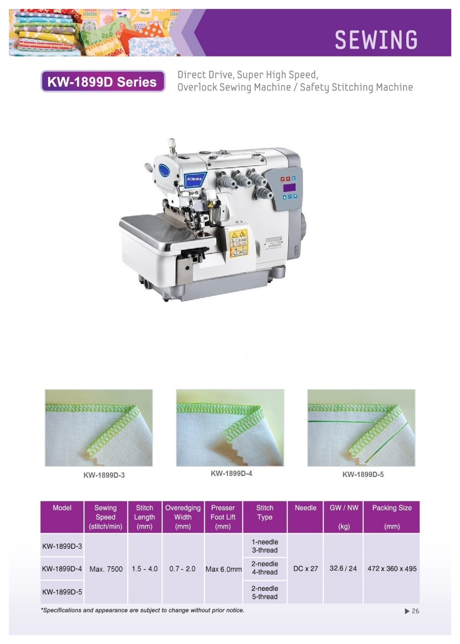 Sewing Speed (stitch/min) : 7500